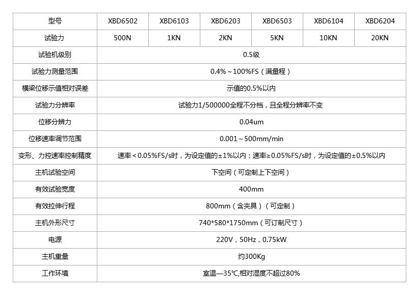 二維碼 設(shè)備名稱(chēng):微機(jī)控制電子萬(wàn)能試驗(yàn)機(jī)產(chǎn)品型號(hào):XBD6502、XBD6103、XBD6203、XBD6503、XBD6104、XBD6204設(shè)備主要功能:本設(shè)備適用于對(duì)金屬材料、非金屬材料及復(fù)合材料的力學(xué)性能的測(cè)試以及工藝性能的分析研究。配上相應(yīng)的工裝,可做拉伸、壓縮、彎曲、剪切、撕裂、剝離、頂破、疲勞等試驗(yàn)。可自動(dòng)求取試驗(yàn)承受力值、斷裂力值、伸長(zhǎng)率、抗拉強(qiáng)度、屈服強(qiáng)度、抗壓強(qiáng)度、彈性模量、剪切強(qiáng)度、撕裂強(qiáng)度、剝離強(qiáng)度等參數(shù)。同時(shí)也可實(shí)現(xiàn)定伸長(zhǎng)應(yīng)力、定應(yīng)力伸長(zhǎng)、載荷保持等要求的測(cè)試。該機(jī)廣泛應(yīng)用于建...">