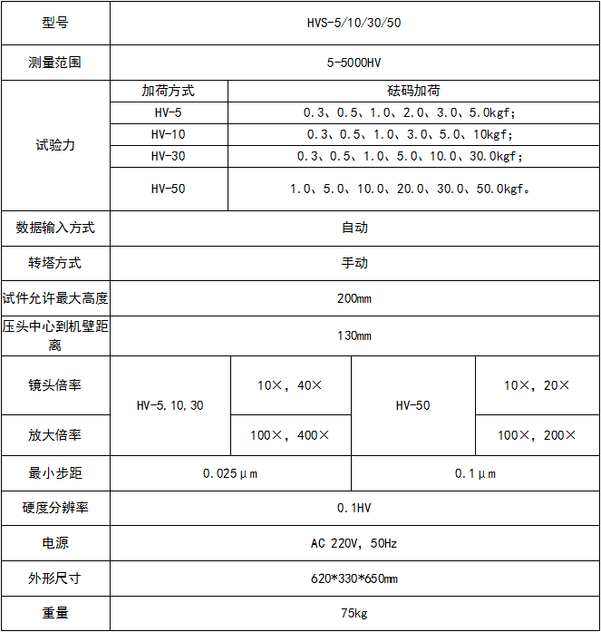 HVS-5/10/30/50數(shù)顯維氏硬度計 產(chǎn)品介紹 1、產(chǎn)品機身部分由澆鑄工藝一次成型,并經(jīng)過了長時間的時效處理。相對于拼板工藝,長期使用形變量小,并可有 效適應各種惡劣的環(huán)境; 2、汽車烤漆,漆質(zhì)檔次高,抗劃傷能力強,使用多年依然光亮如新; 3、高 級光學工程師設計的光學系統(tǒng)不僅圖像清晰,還可作為簡單的顯微鏡使用,亮度可調(diào),視覺舒服,長時間操作不容易疲勞; 4、采用高分辨率的測量和觀察物鏡,結合內(nèi)置了長度編碼器的高清數(shù)字測量目鏡,實現(xiàn)了壓痕對角線長度的一鍵測量,擺脫了讀取過程中手動輸入的誤差和煩惱; 5、可選配CCD圖像處理系統(tǒng)以及視 頻測量裝置; 6、配置了藍牙模組,藍牙打印機,并可選配藍牙PC接 收器實現(xiàn)無線打印和無線數(shù)據(jù)傳輸; 7、精度符合GB/T4340.2 ISO6507-2 和美國ASTME384。 應用范圍 1、黑色金屬、有色金屬、IC薄片,表面涂層、層壓金屬; 2、玻璃、陶瓷、瑪瑙、寶石、薄塑料等; 3、碳化層和淬火層的深 度及梯度的硬度測試; 4、適用于平行平面和微小零件及超薄零件的精 密維氏測量。 技術參數(shù) ![]() 附件配置